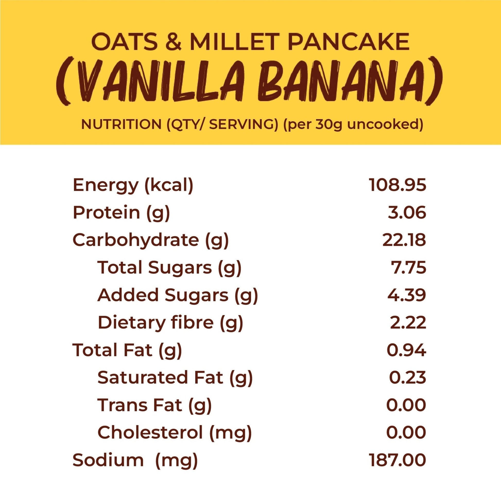 1 X Oats & Millet Pancake (250 g) (Choose your flavour - Vanilla Banana, Chocolate Banana, Blueberry & Double Choco Chip)