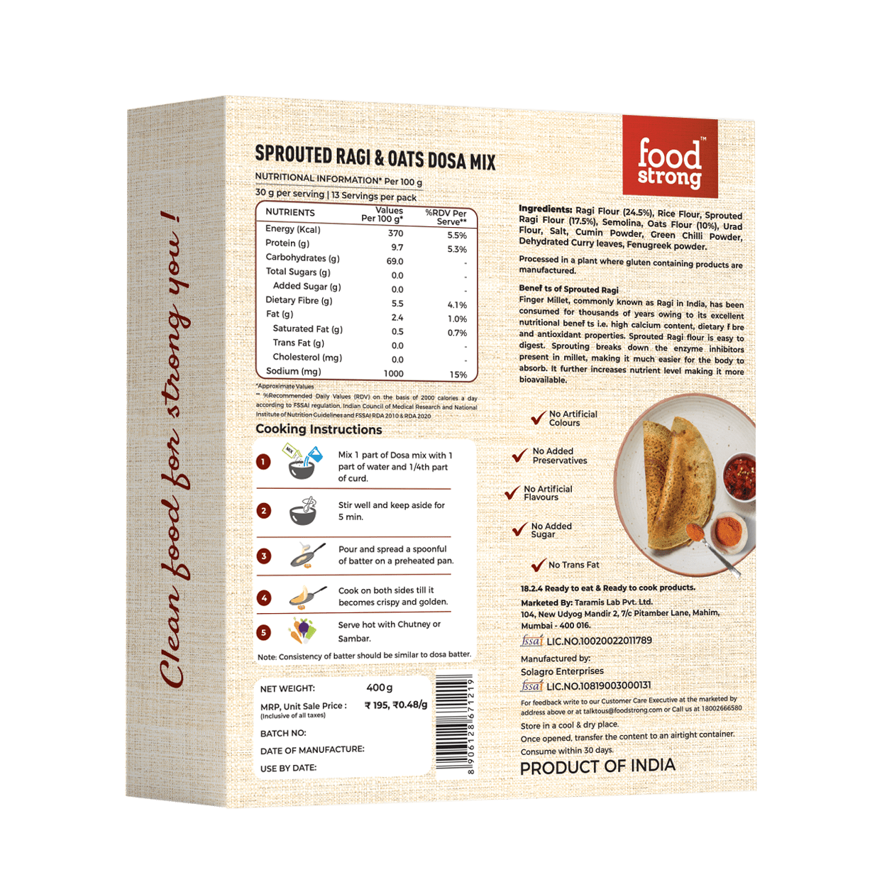 1 X Spouted Ragi & Oats Dosa Mix (400g)