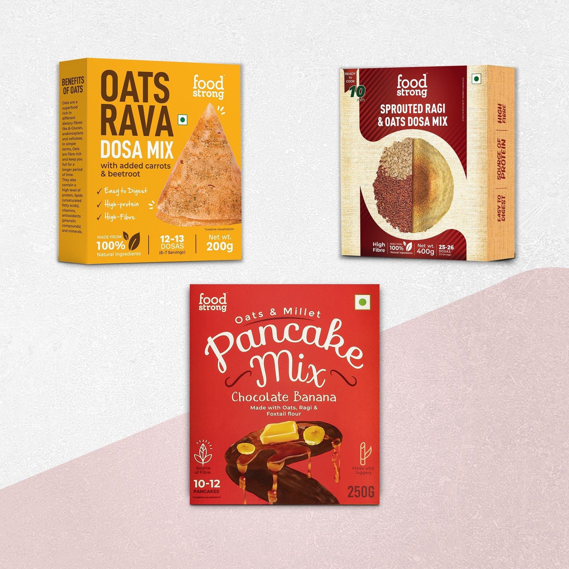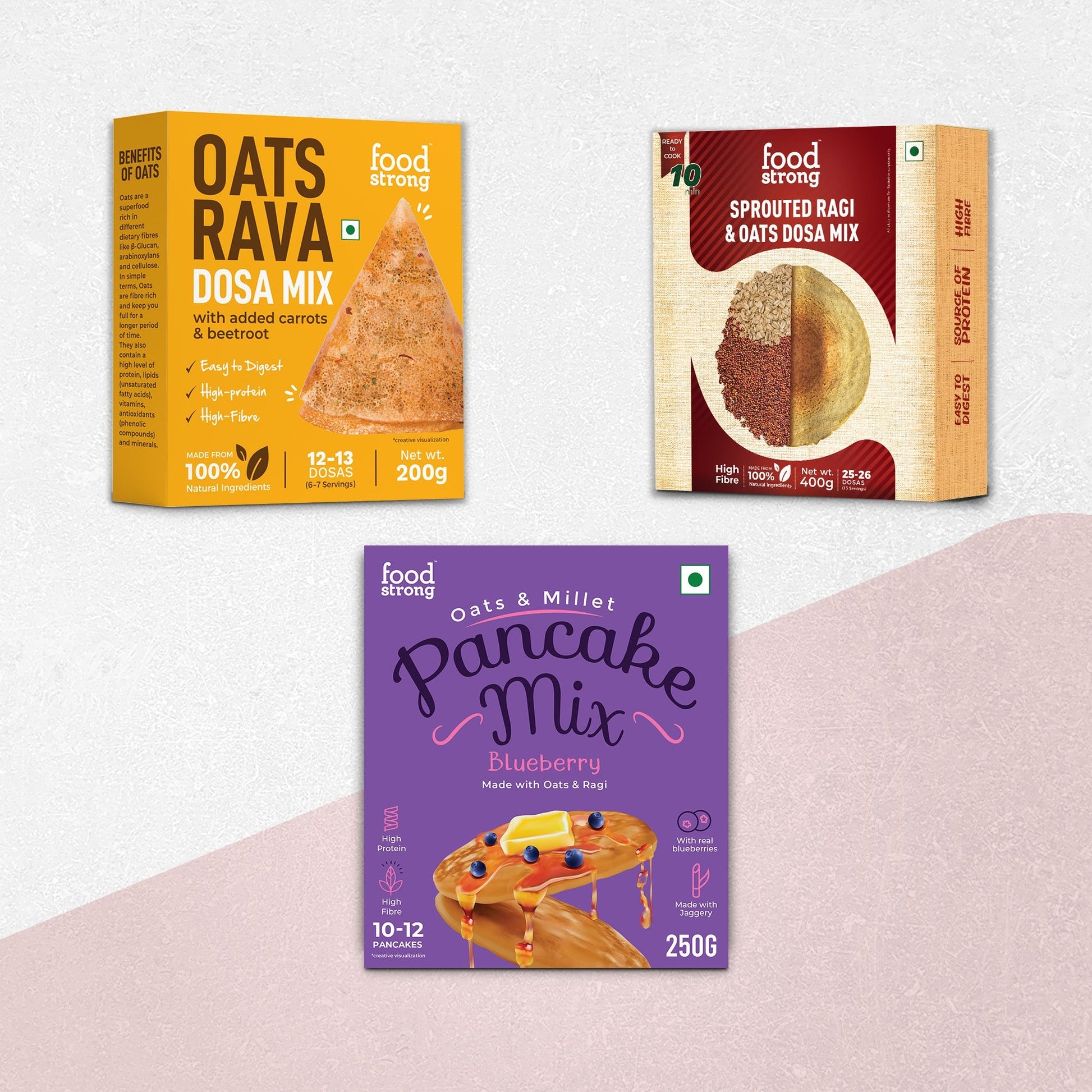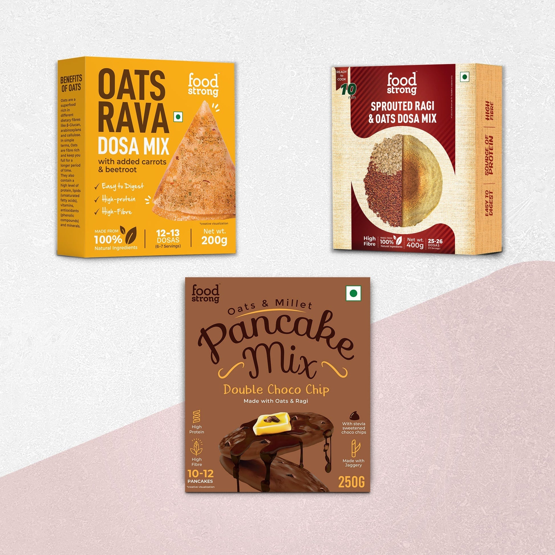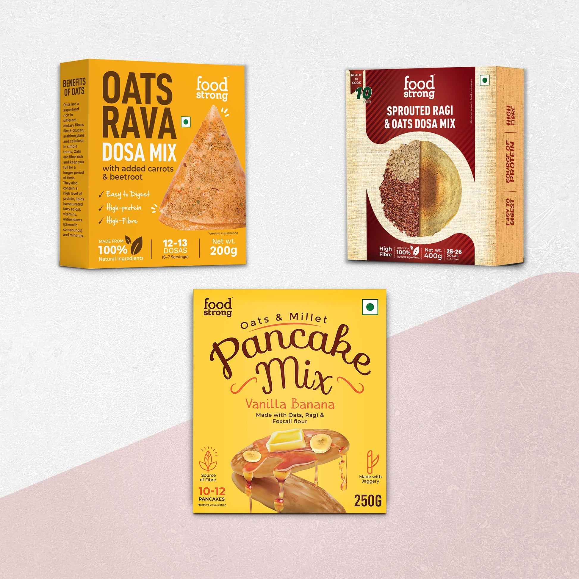 We've got you covered. From our 100% natural Dosa mixes to our famous Oats & Millet Pancake mixes, get oats in a delicious form every morning with our instant mixes.