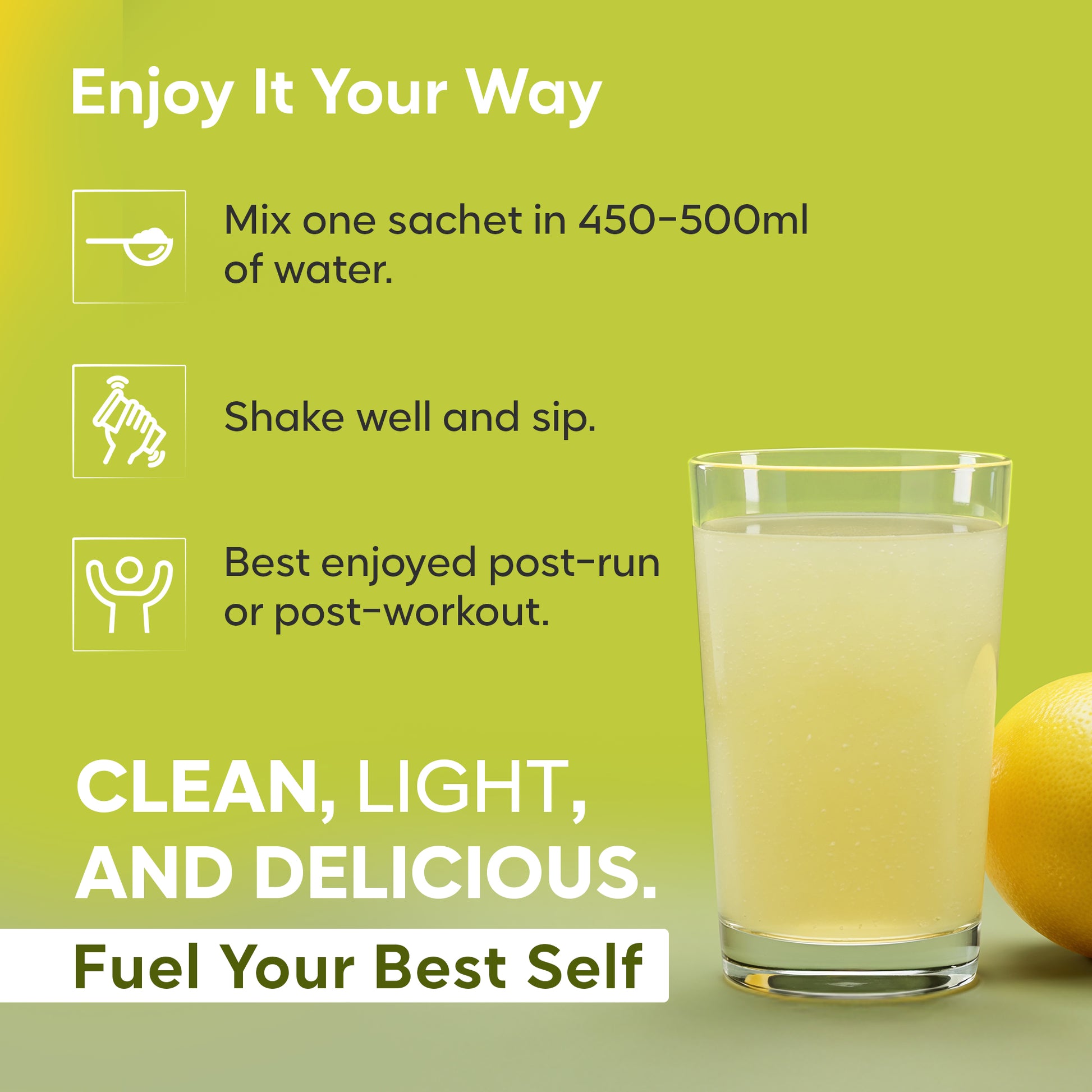 - Replaces electrolytes lost in sweat during a 10K run.