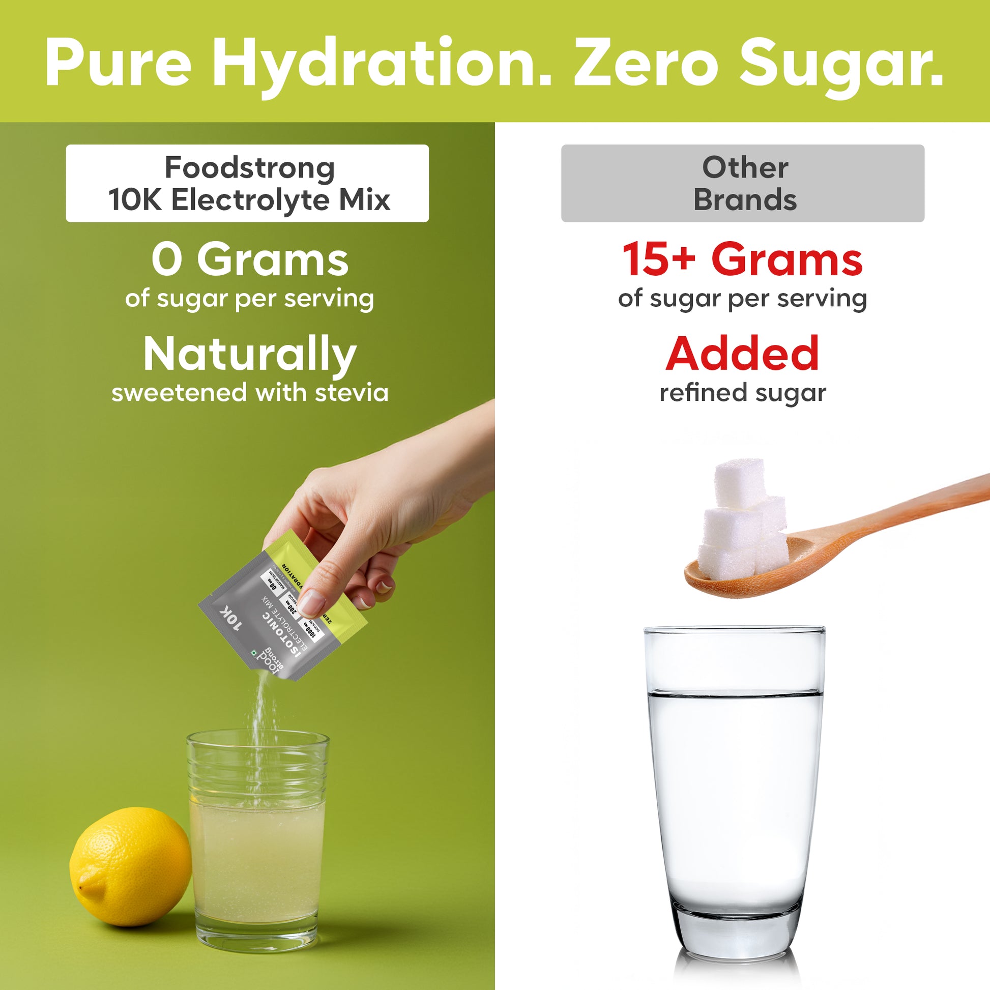 - No sugar = no crashes, no bloating, no sloshy gut.