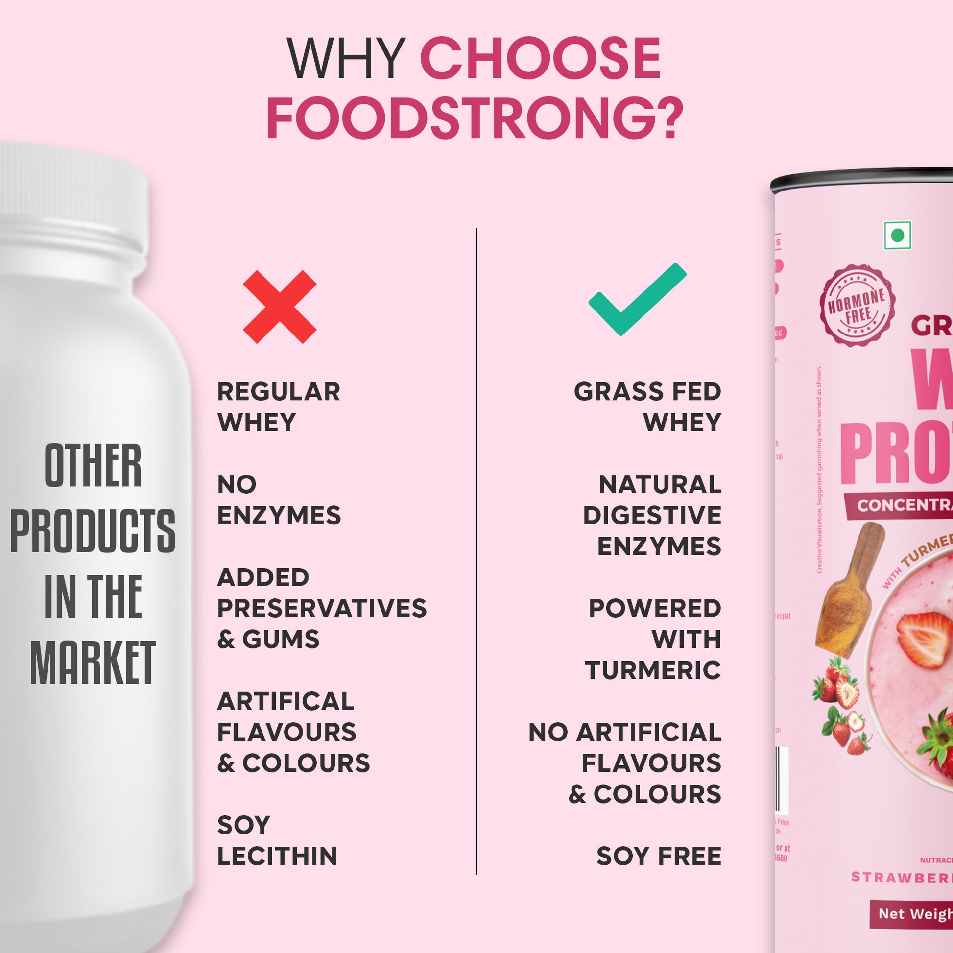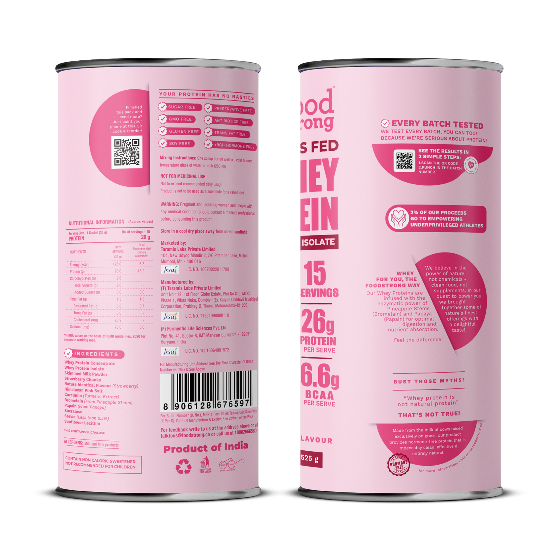 Meet your new post-workout ritual! Foodstrong Strawberry Whey Protein delivers a clean, bloat-free punch of grass-fed goodness with every scoop: