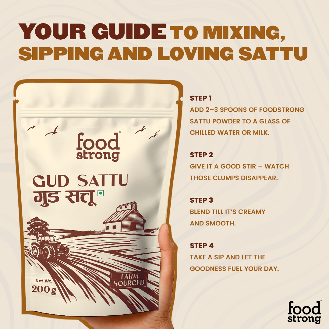 Naturally sweet, nutritionally rich, and light on the stomach, Gud Sattu is the perfect addition to your everyday diet — whether it’s a quick breakfast, post-workout fuel, or a mid-day pick-me-up.