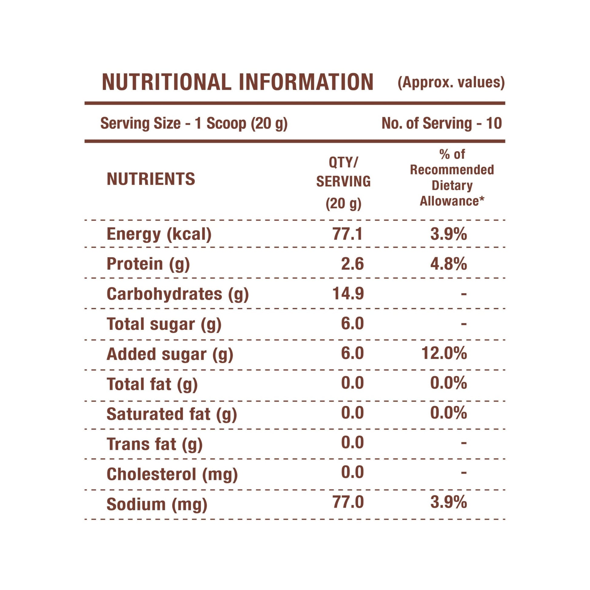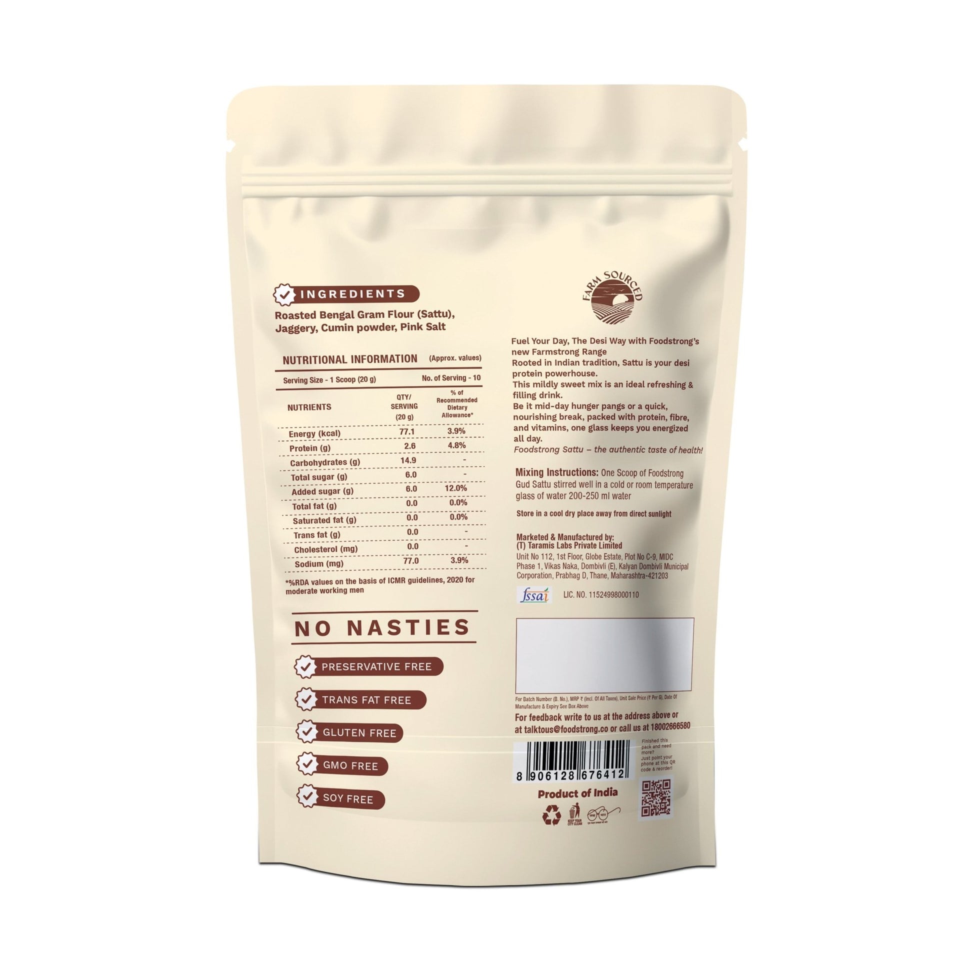 🌾 Roasted Bengal Gram (Sattu) – Naturally high in fibre and protein (2.6g per serving), this age-old superfood provides sustained energy without processed ingredients.