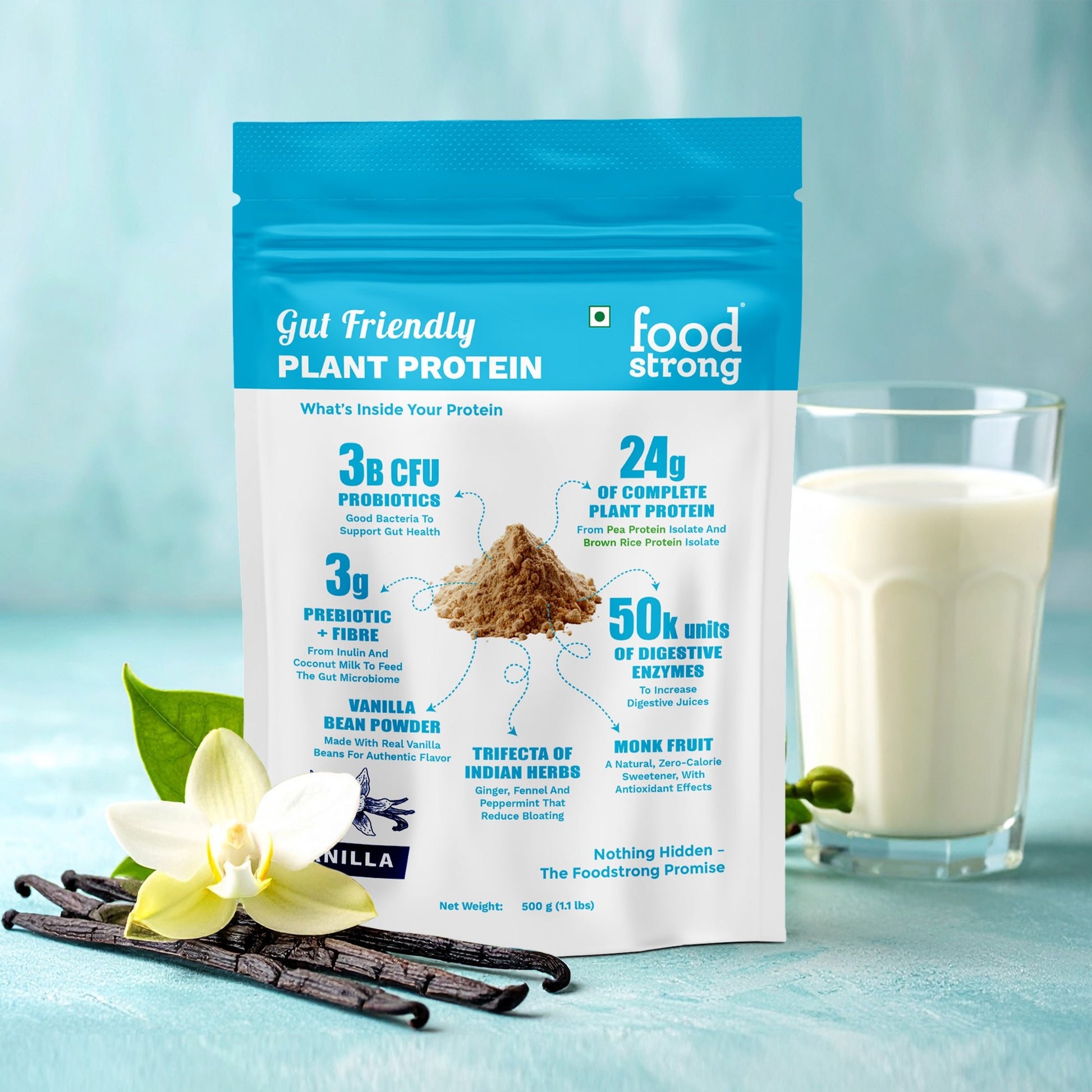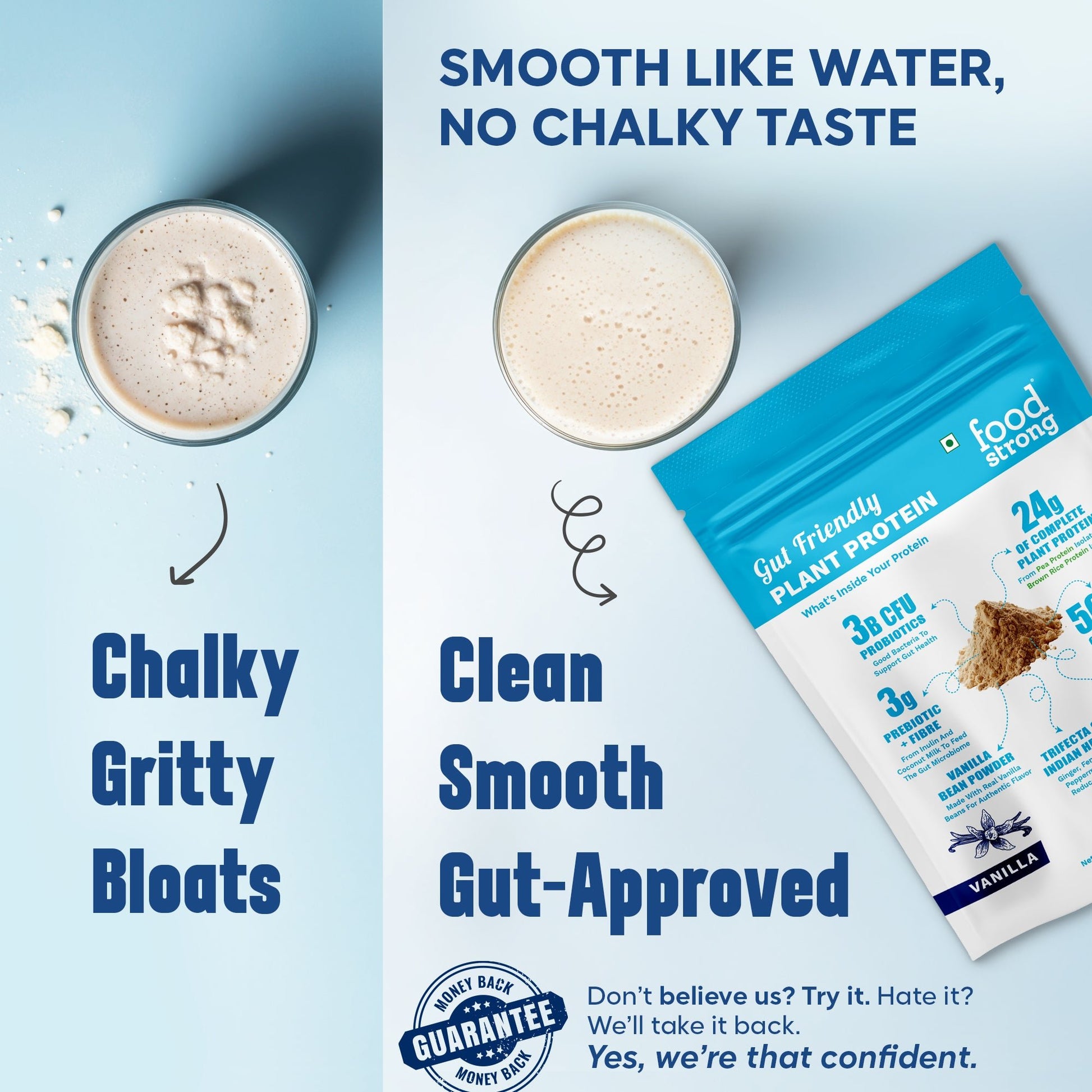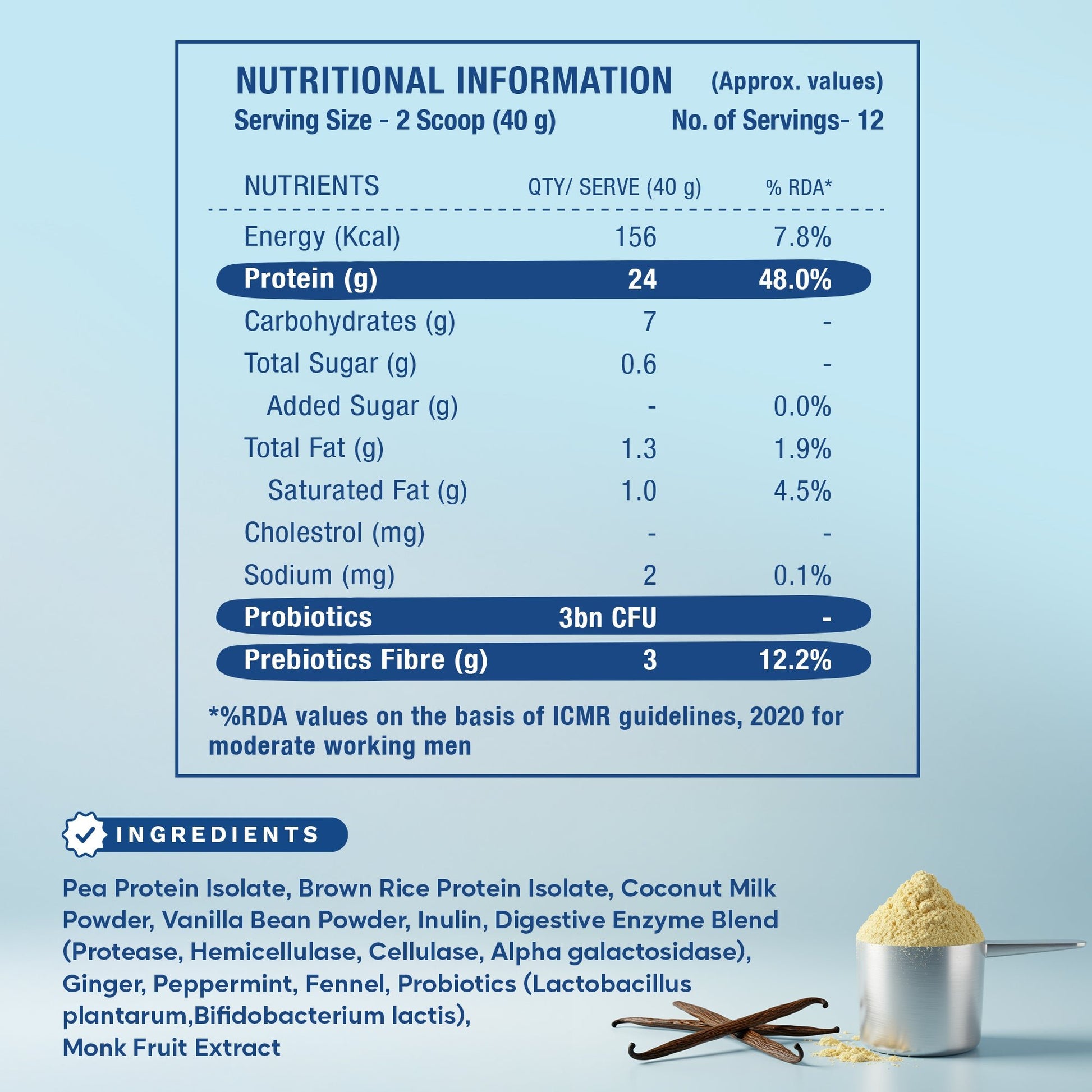 Naturally sweetened with monk fruit and flavoured with real vanilla bean powder, this vegan blend is free from sugar, gluten, soy, preservatives, and artificial additives. Smooth, delicious, and easy on your gut.
