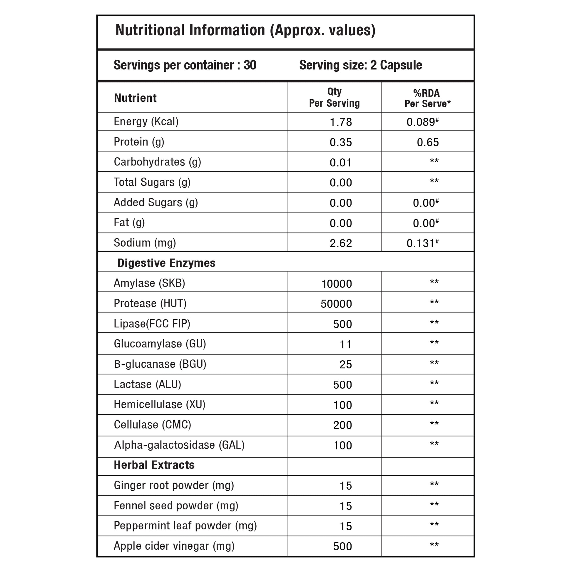 The powerful blend of digestive enzymes (Amylase, Protease, Lipase, and more) breaks down proteins, fats, and carbohydrates, making it easier for your body to absorb nutrients and reduce bloating. The herbal extracts work synergistically to calm the gut and promote a balanced digestive system.