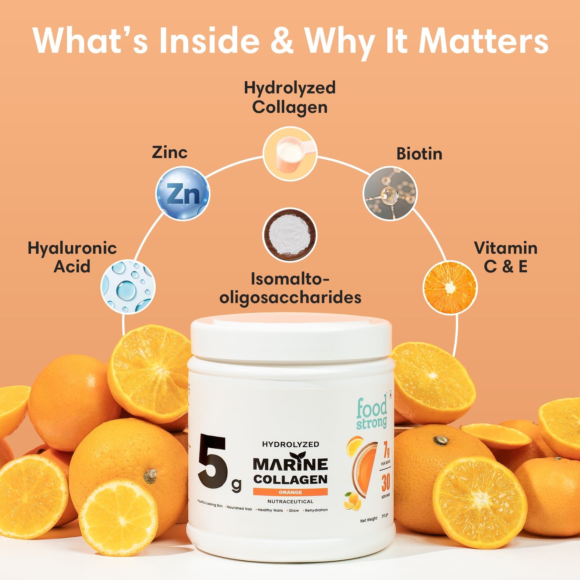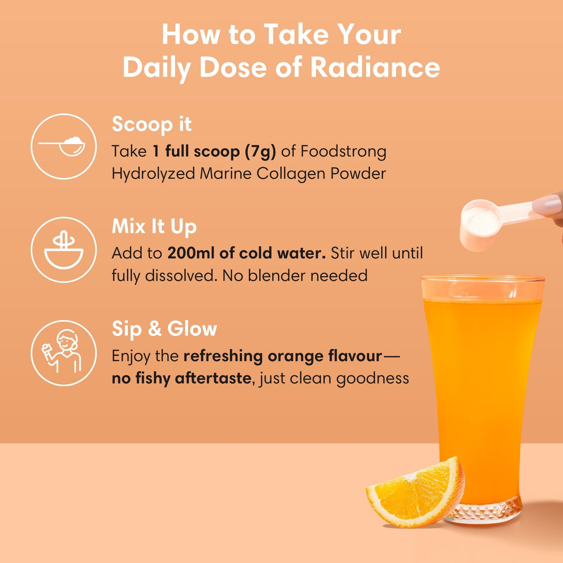 Hydrolyzed Marine Collagen Powder – Orange Flavour | 30 Servings