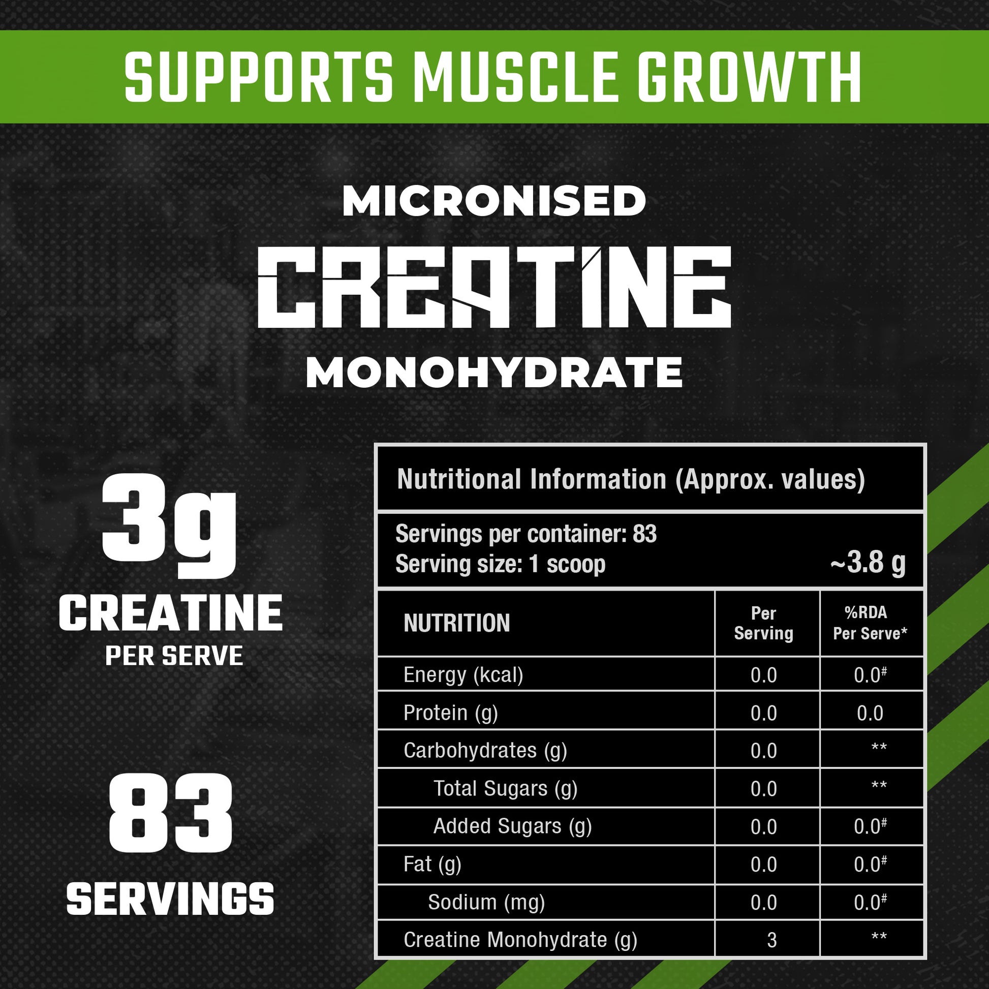A clean, micronised formula that supports strength, endurance, and faster recovery without fillers or heavy texture.