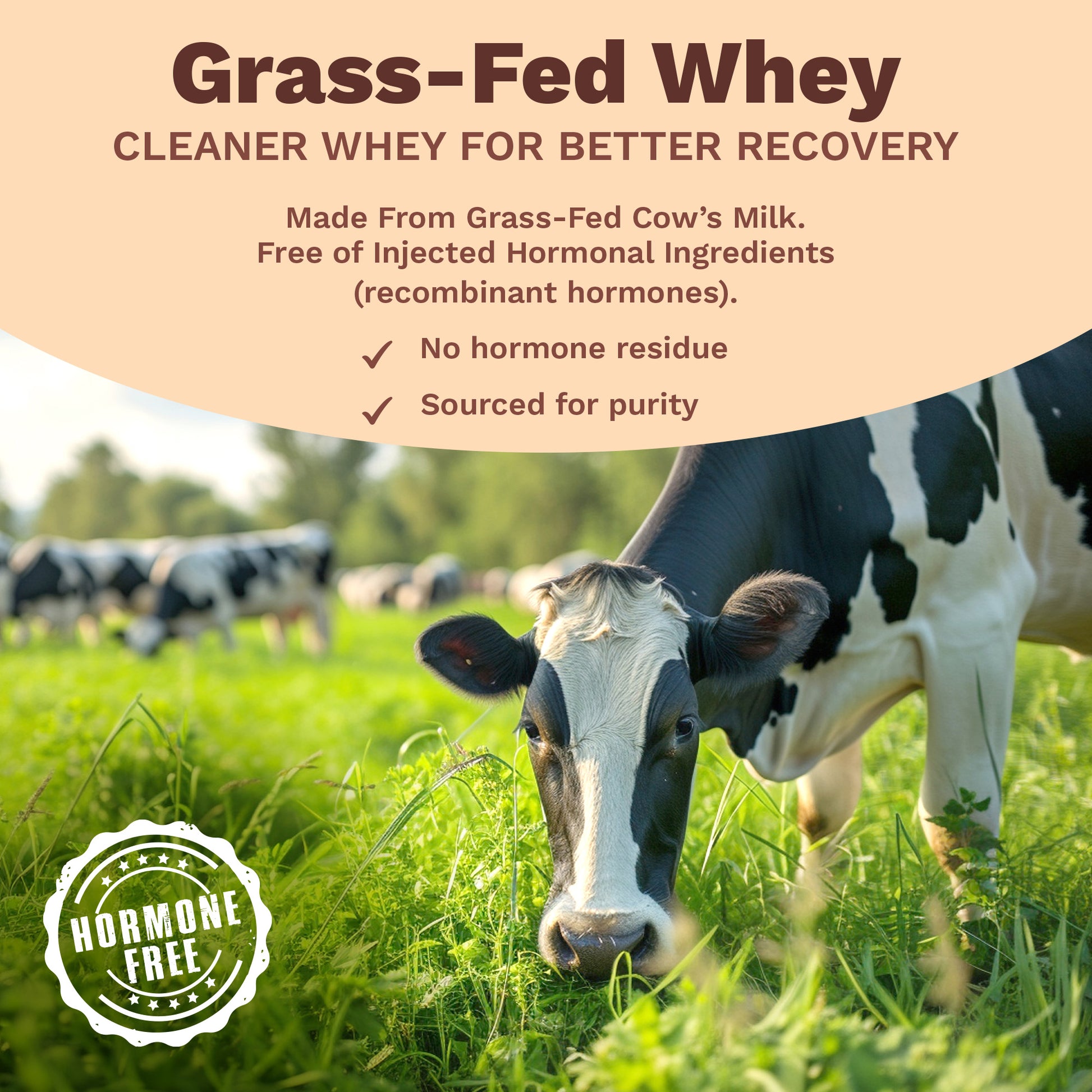 - Hormone-Free: Grass-fed whey is rBST and rBGH hormone-free.