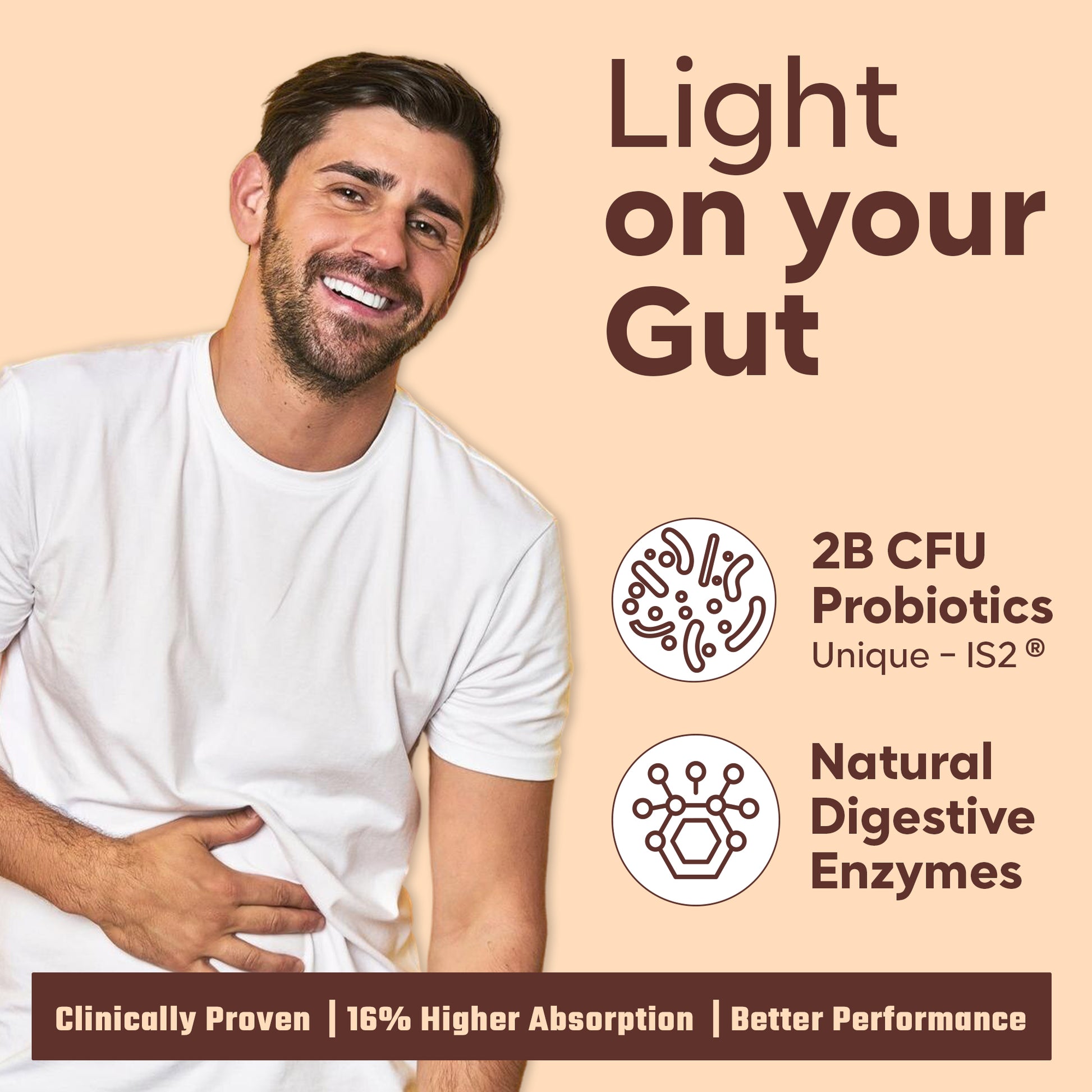 Protein That Actually Works - Because protein you don’t absorb is just expensive powder. Our Next-Gen Whey Protein is made from grass-fed whey isolate and concentrate, enriched with 2 billion CFU of gut-friendly probiotics and natural digestive enzymes. It’s easy on the stomach, free from nasties, and helps you build lean muscle without the bloat.