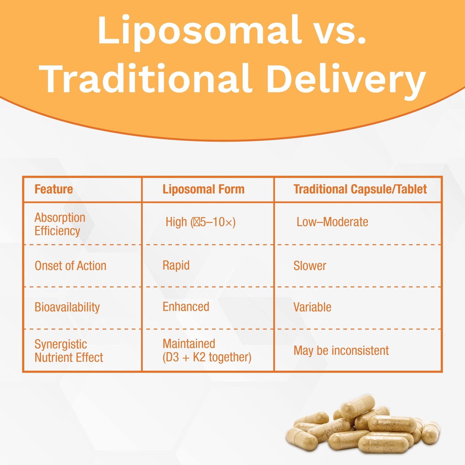 D3 enhances calcium absorption, and K2 ensures it's utilized correctly, reducing risks of bone loss and arterial calcification. Together, they promote strong bones, better immunity, and a healthier heart.