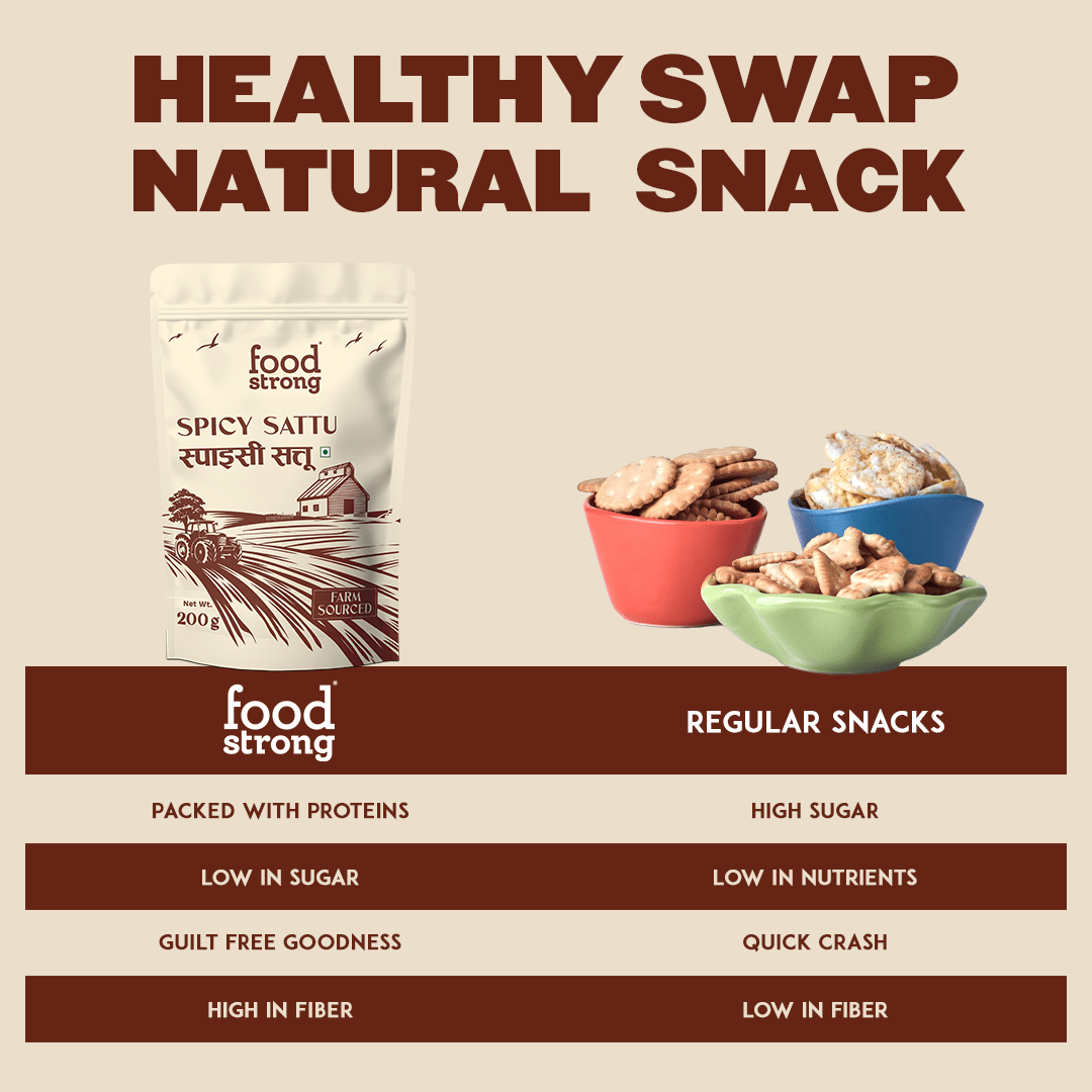 Light on the stomach yet nutritionally dense, Spicy Sattu is your ideal pick for a quick breakfast, post-workout refuel, or mid-day energy boost.