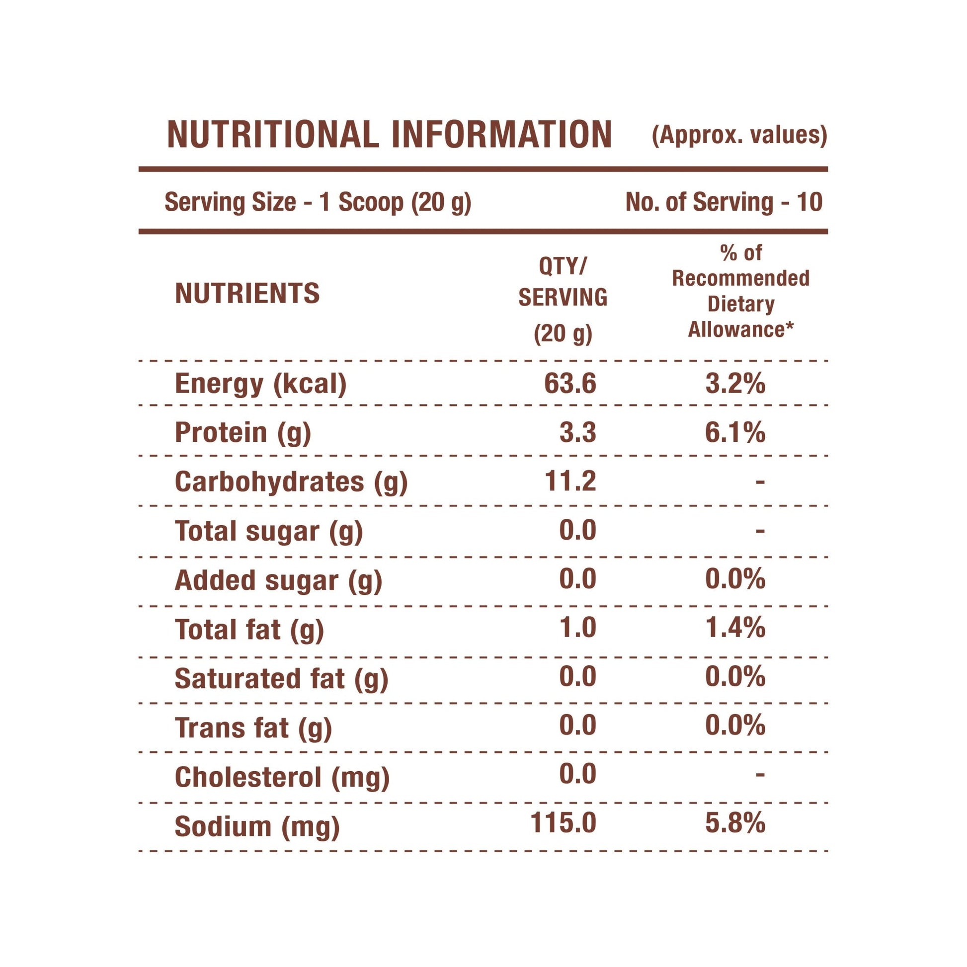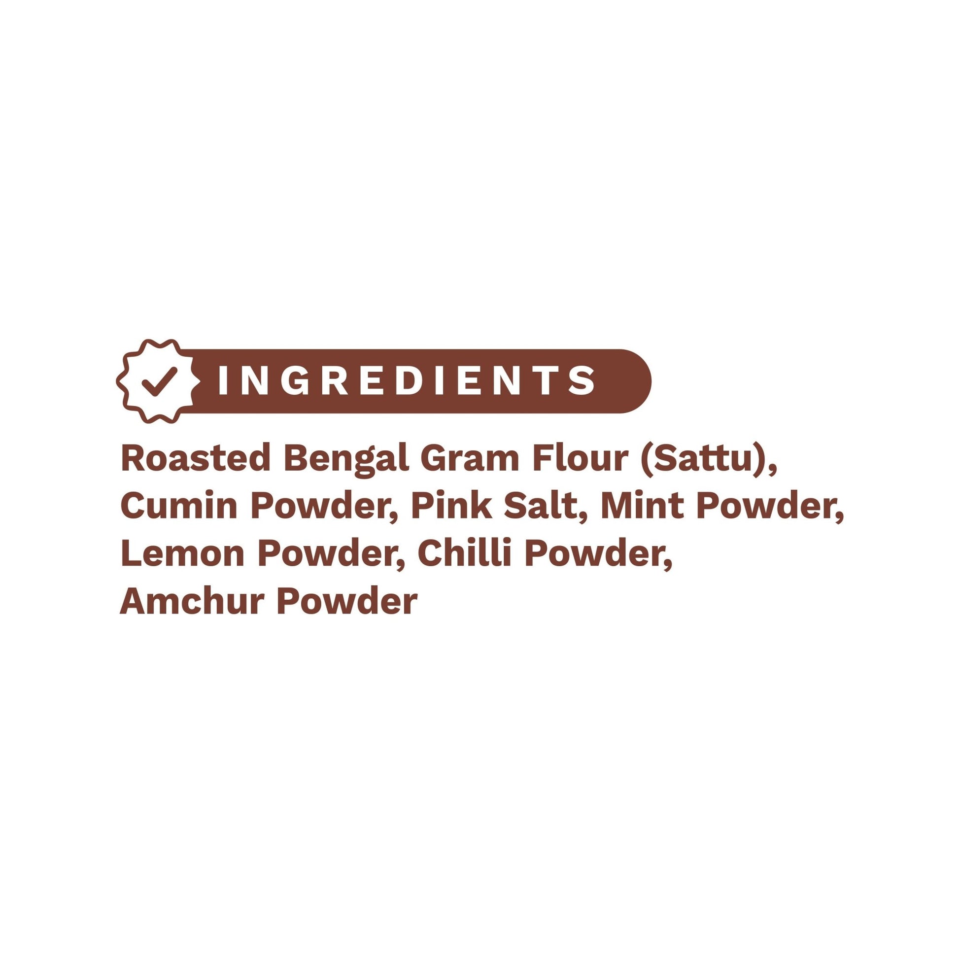 🌾 Roasted Bengal Gram Flour (Sattu) – Naturally high in fibre and protein (3.3 g per serving), this traditional superfood fuels you with sustained energy and supports digestion — no artificial additives, just real nutrition.