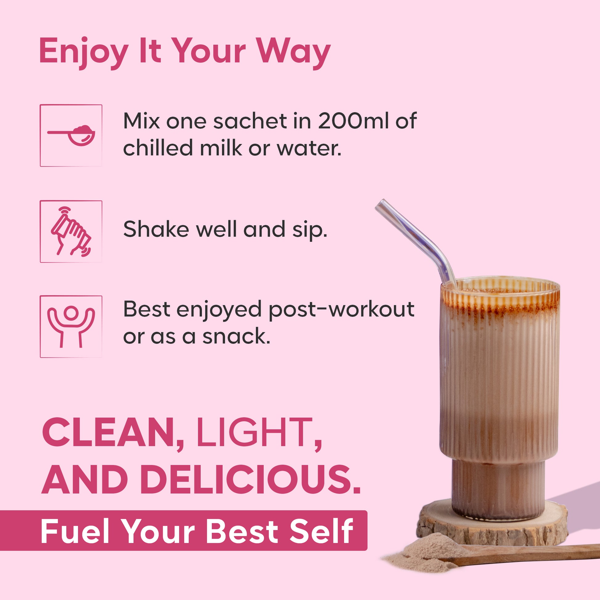 Just add one sachet to chilled milk or water, shake, and enjoy! Get the clean, boost-your-best self you deserve—every single day.