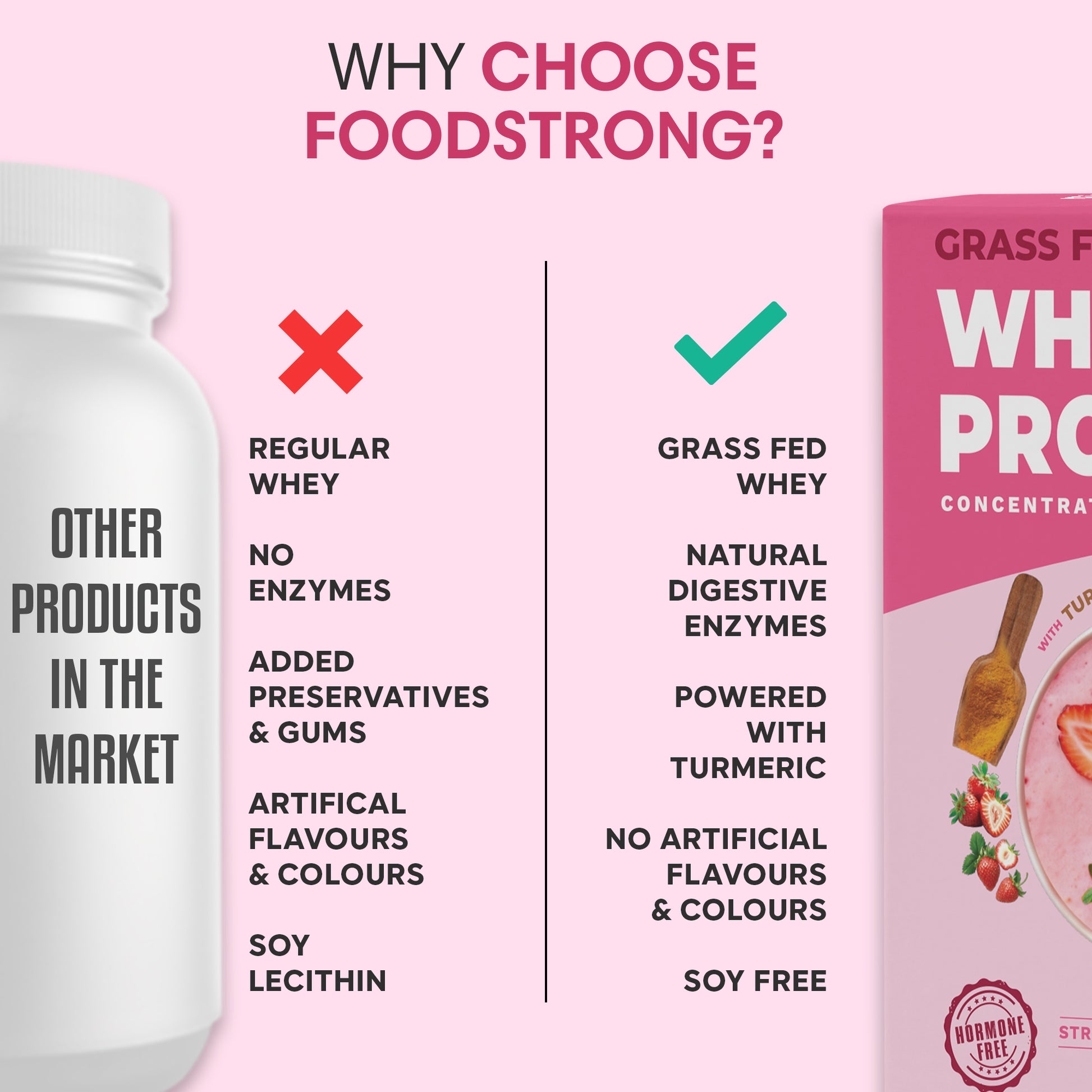 Level up your routine with Foodstrong’s Strawberry Whey Protein turns the joy of real fruit into pure, bloat-free muscle fuel.