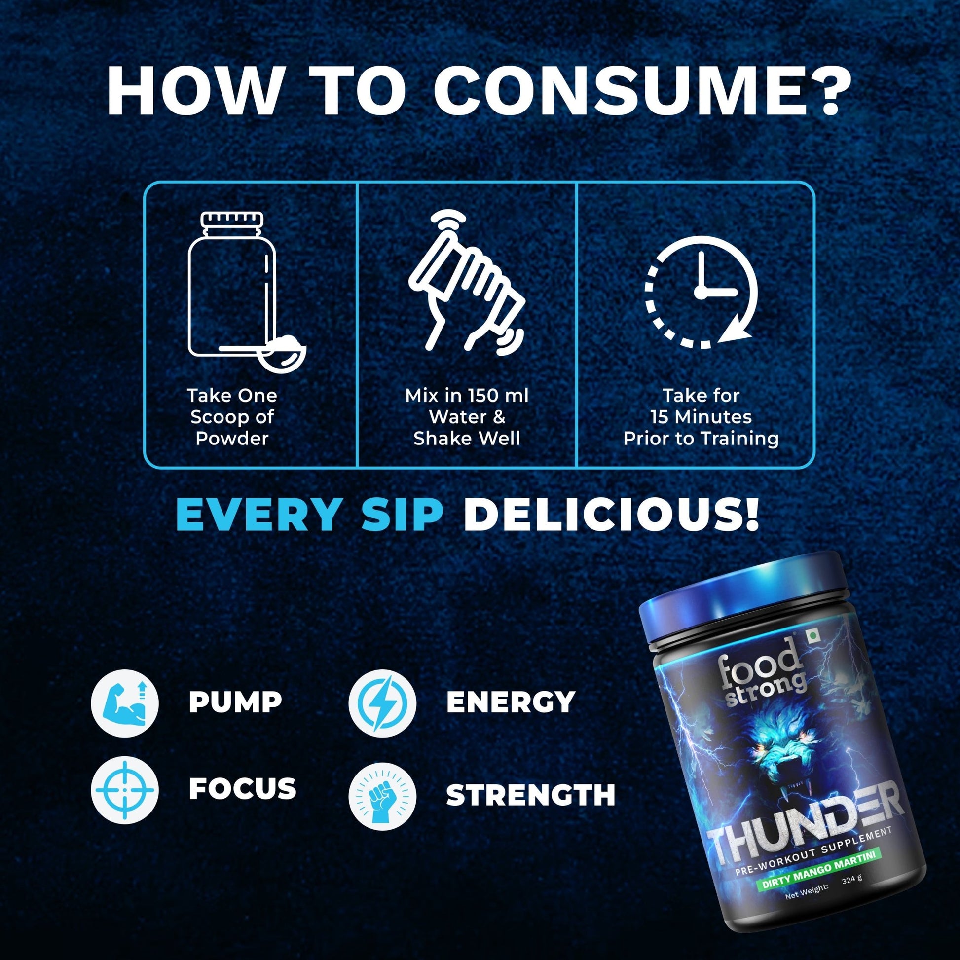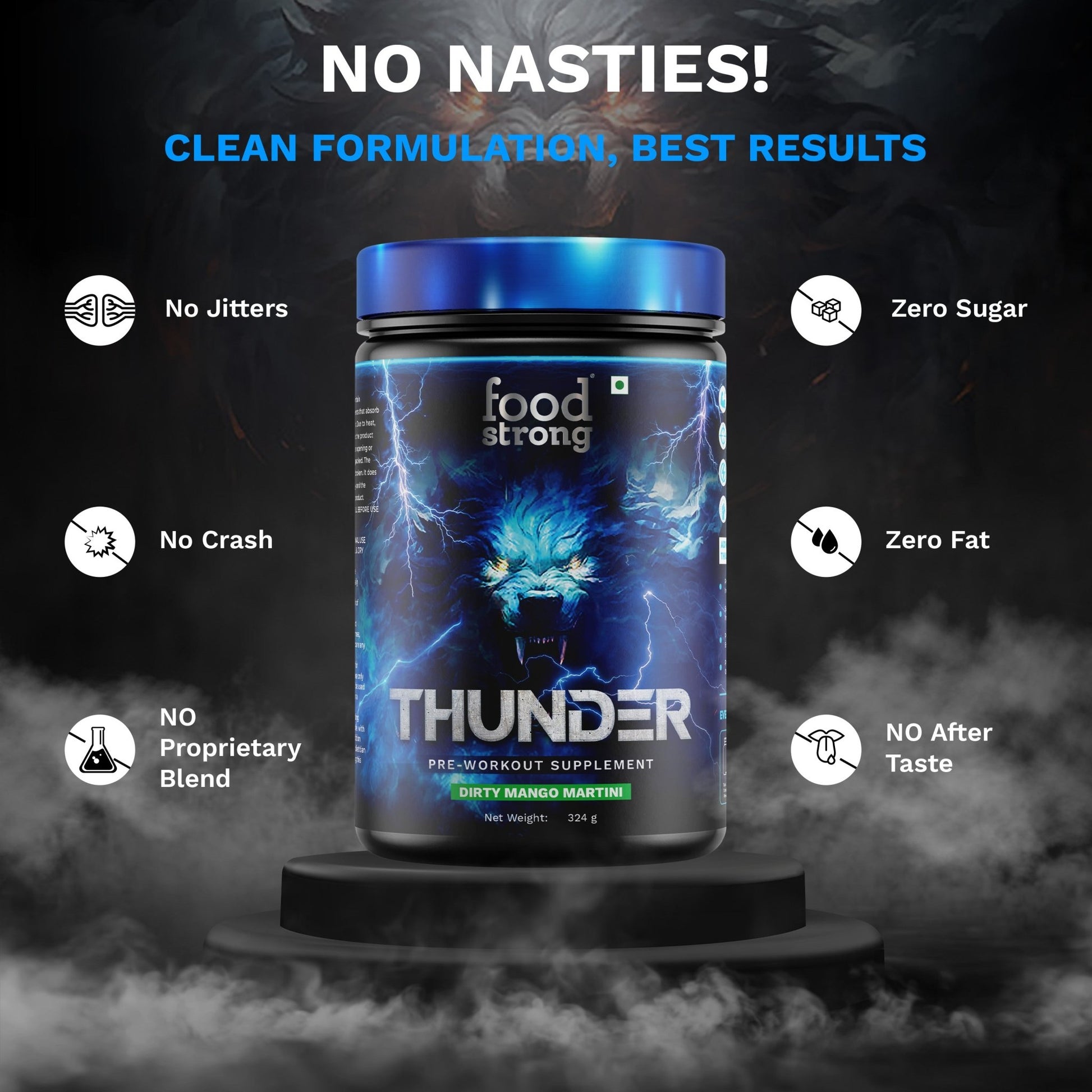 Thunder is Foodstrong’s performance-first pre-workout designed for people who train with intent. Built with clinically backed ingredients and clean stimulants, Thunder helps you power through workouts with sustained energy, improved endurance, and laser-sharp focus—without the crash.