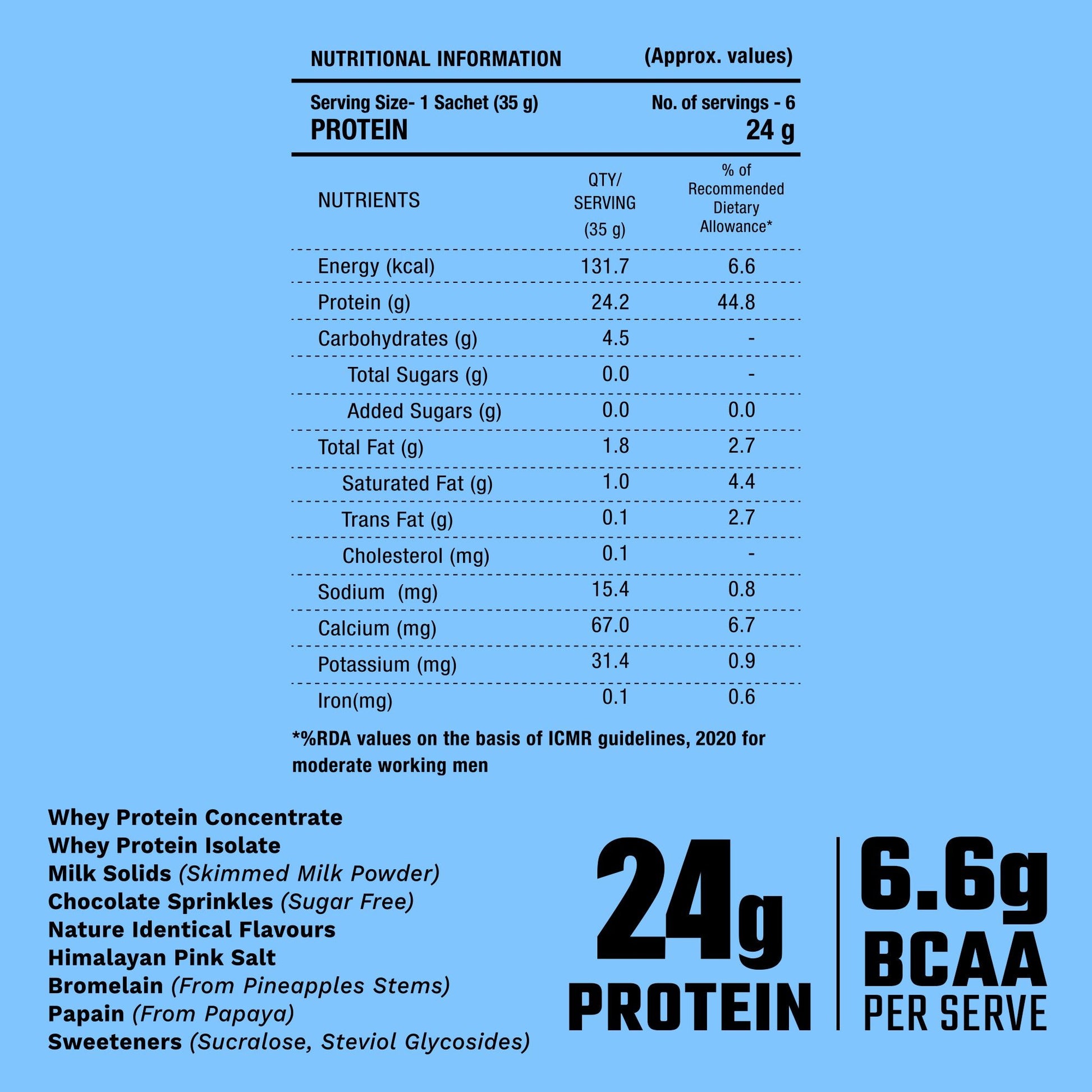 Each sachet delivers 24g of protein – equivalent to 3 bowls of cooked dal.